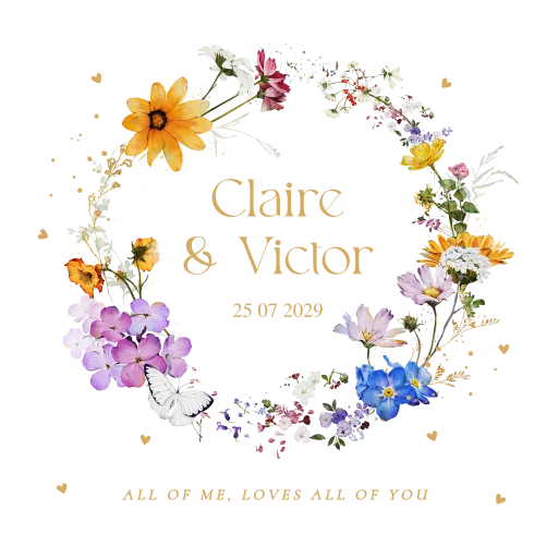 Tegeltje bruiloft wit met bloemenkrans.