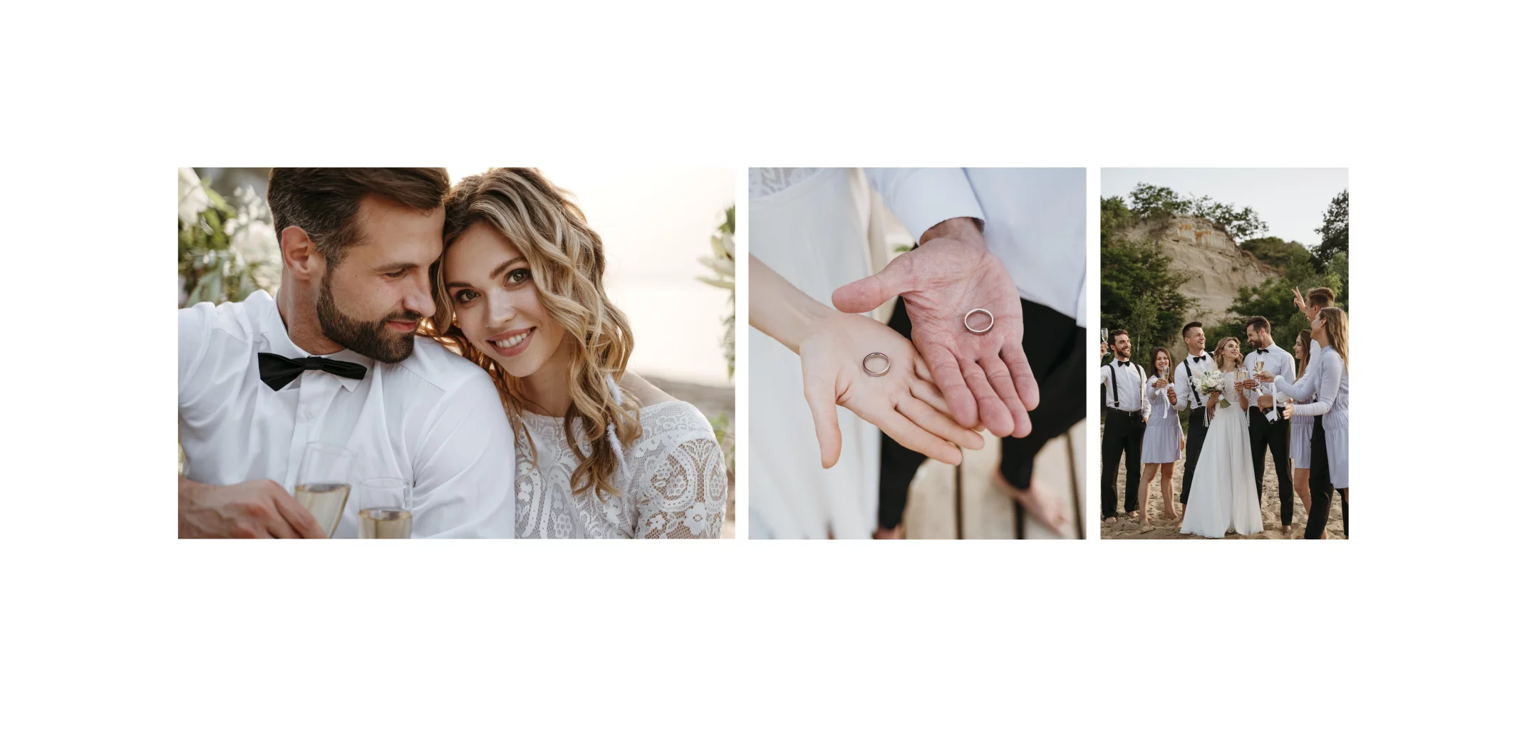 Bedankkaart huwelijk wit met fotocollage en goudfolie. Bedank de gasten van jullie speciale dag met dit prachtige gepersonaliseerde kaartje!