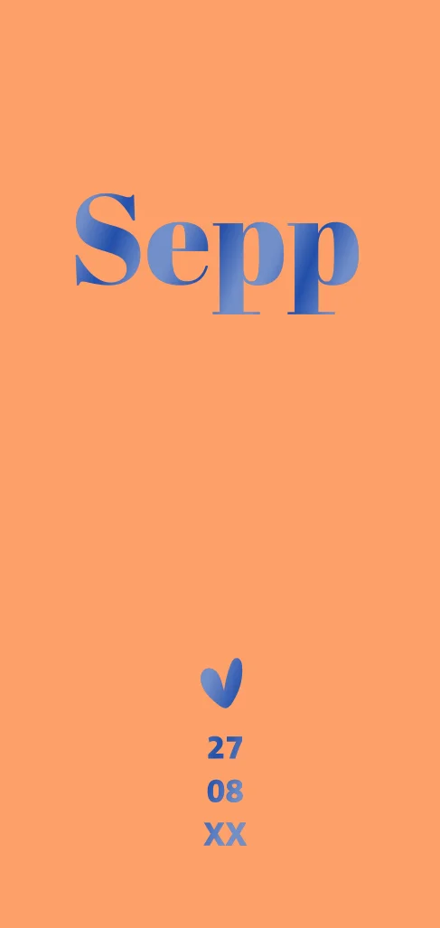 Geboortekaartje langwerpig voor een jongen met colorblocking oranje en blauw met hoogglans. Pas de kleuren naar wens aan!