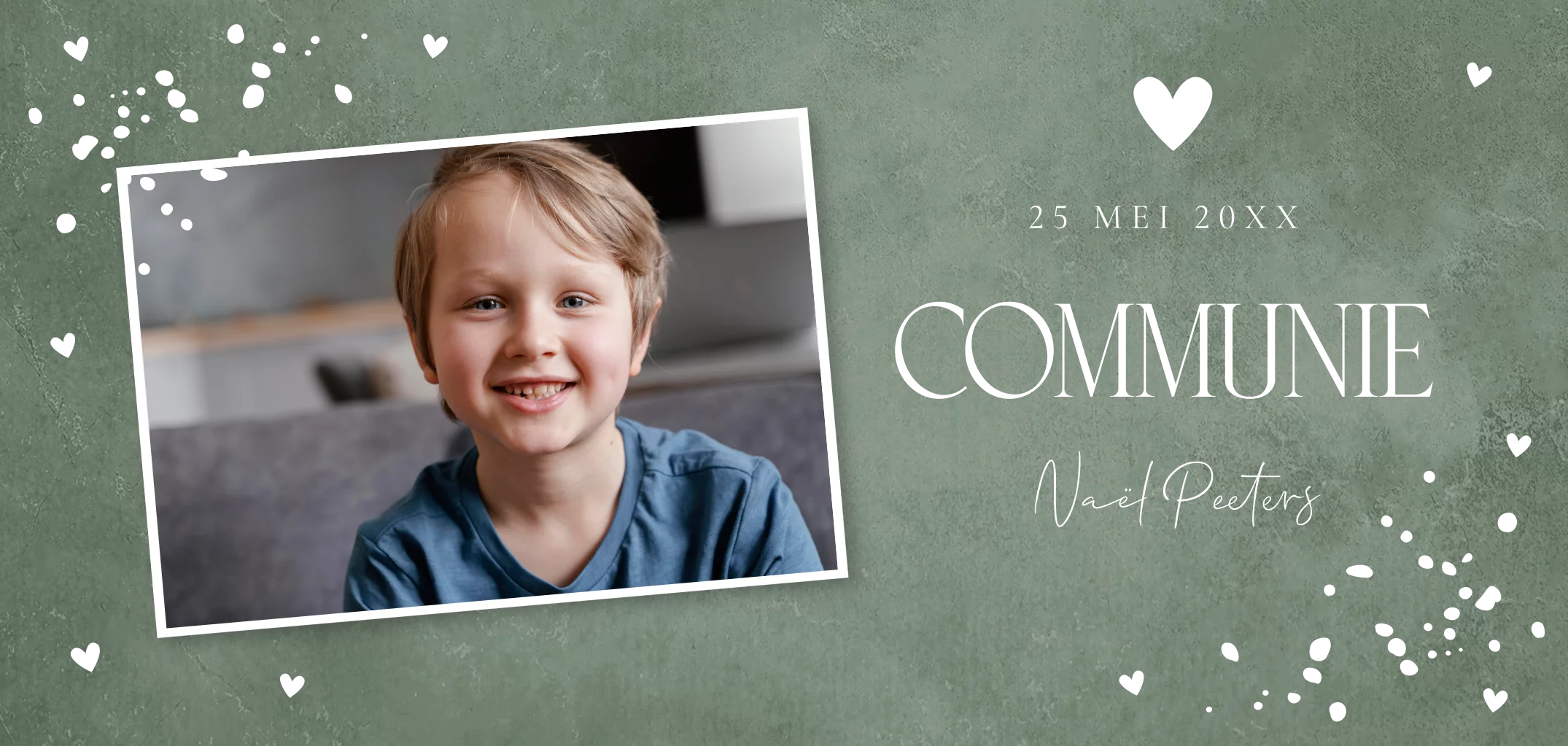 Communiekaart groen jongen foto goudfolie