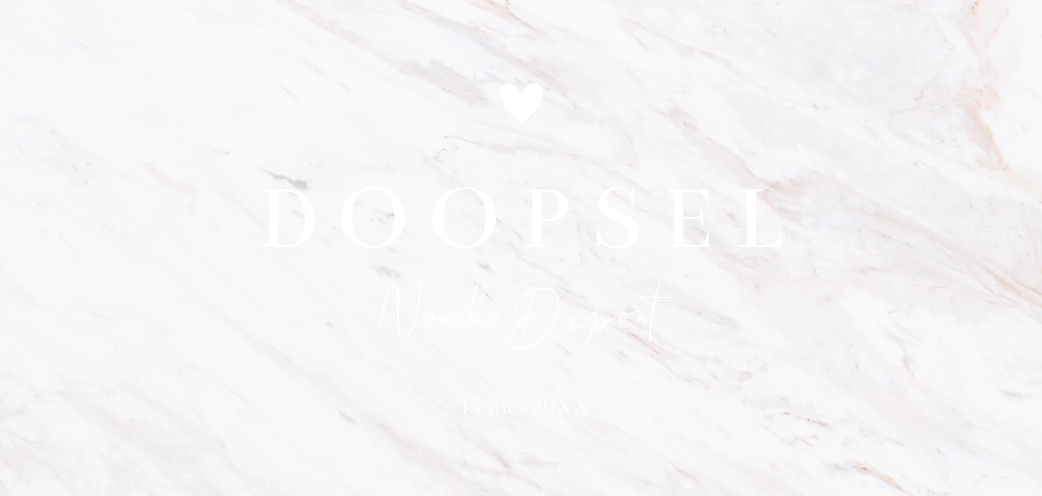 Doop uitnodiging voor een jongen of meisje met wit marmer look, hartje en goudfolie.