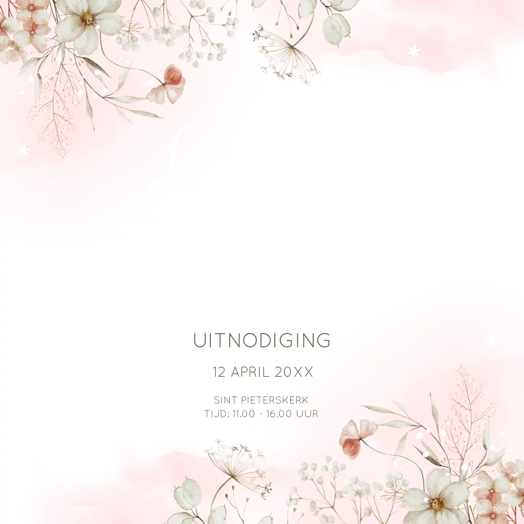 Doopkaart voor een meisje roze met bloemen en goudfolie.