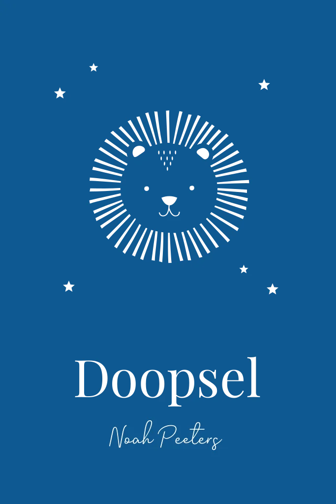Uitnodiging doopfeest blauw voor een jongen met leeuwtje van goudfolie.
