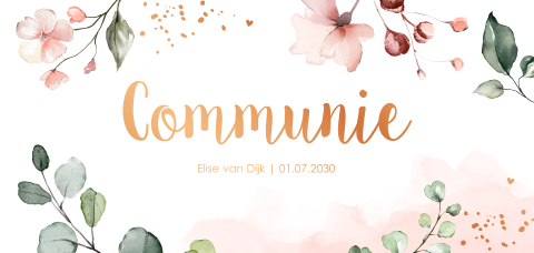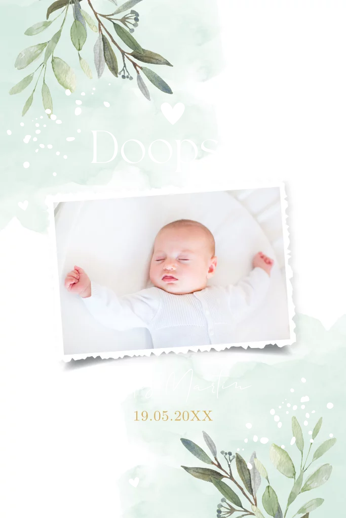 Doopkaart jongen foto botanisch bladeren goudfolie
