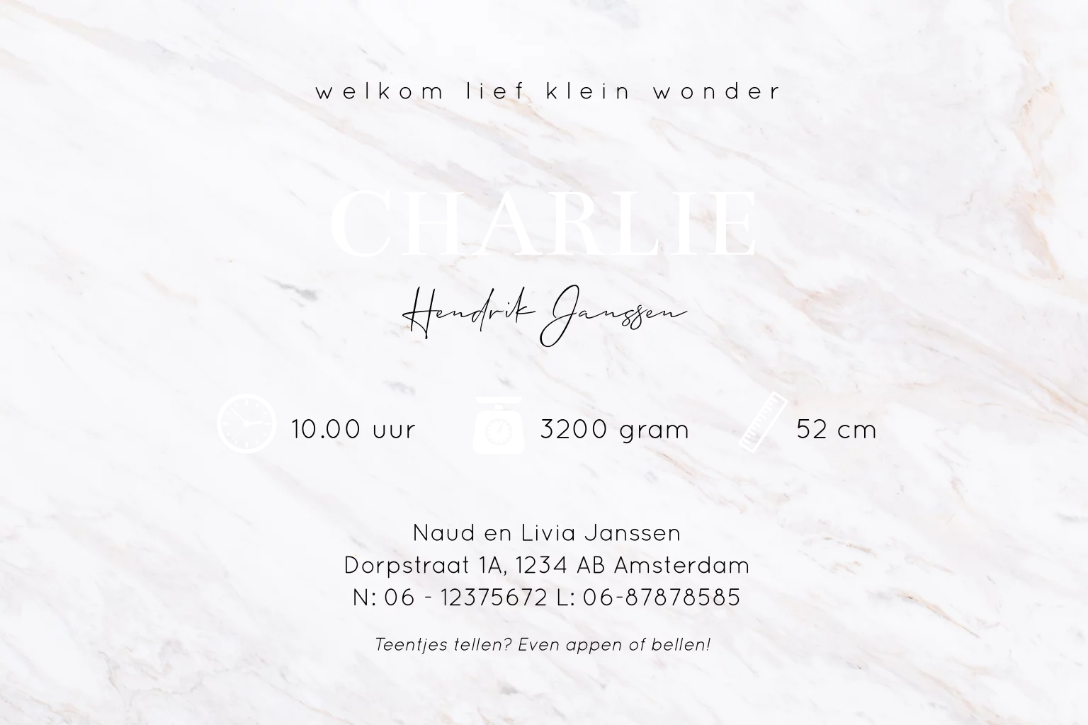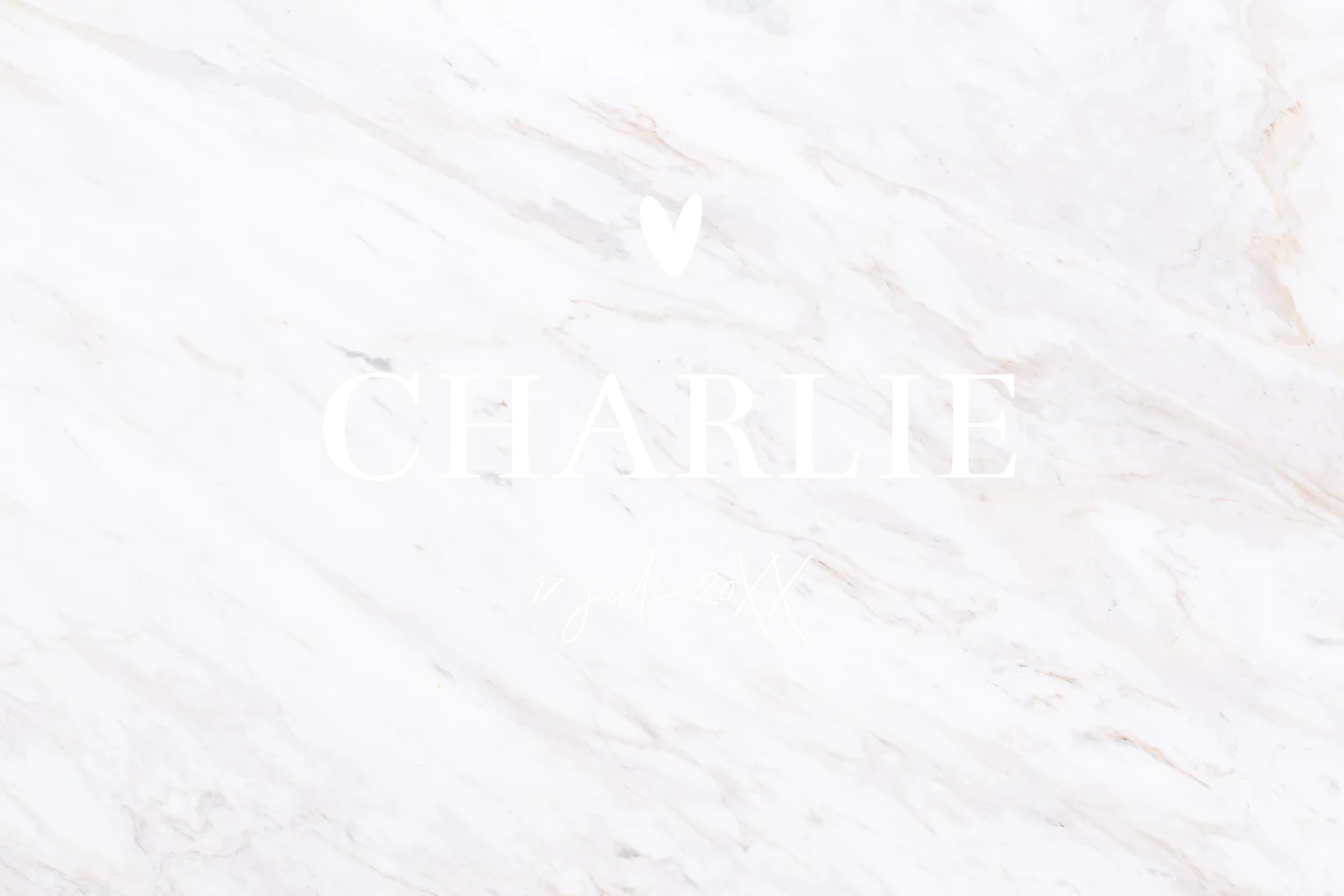 Geboortekaartje wit marmerlook goudfolie hartje clean