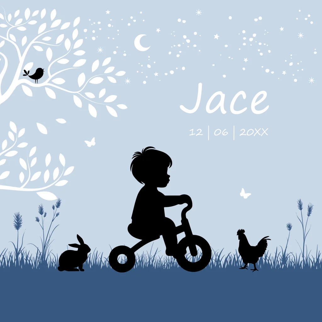 Geboortekaartje silhouet jongen fiets boom dieren goudfolie