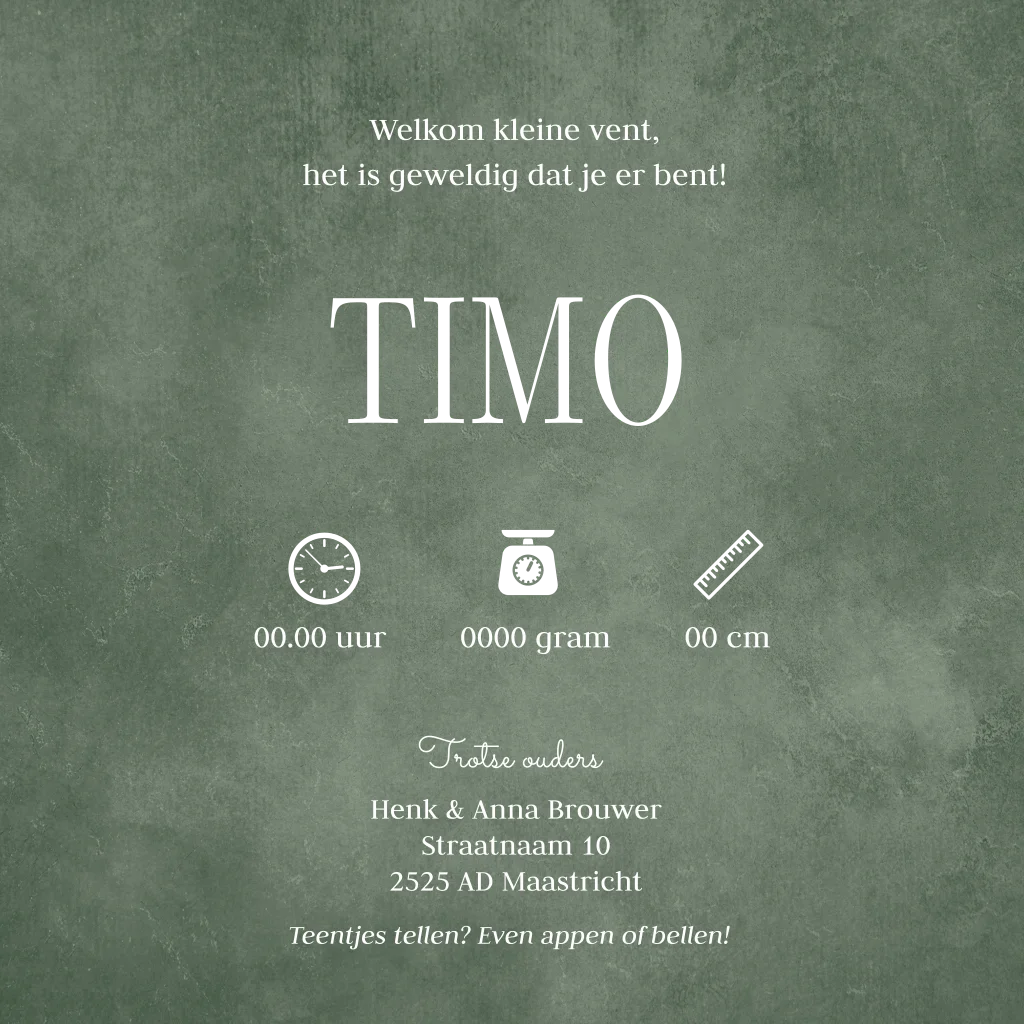 Geboortekaartje jongen groen hartjes goudfolie