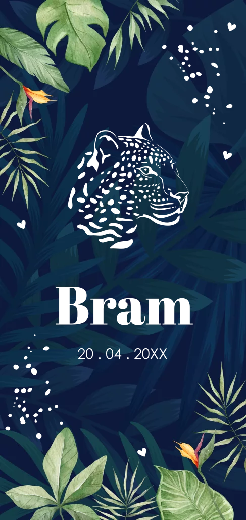Geboortekaartje jongen panter jungle bladeren goudfolie