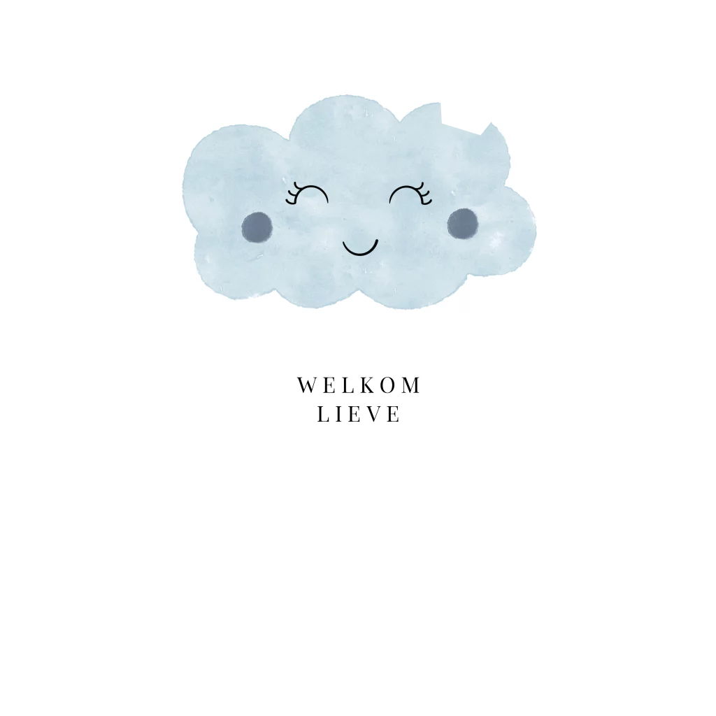 Geboortekaartje blauw voor een jongen met wolkje en goudfolie.