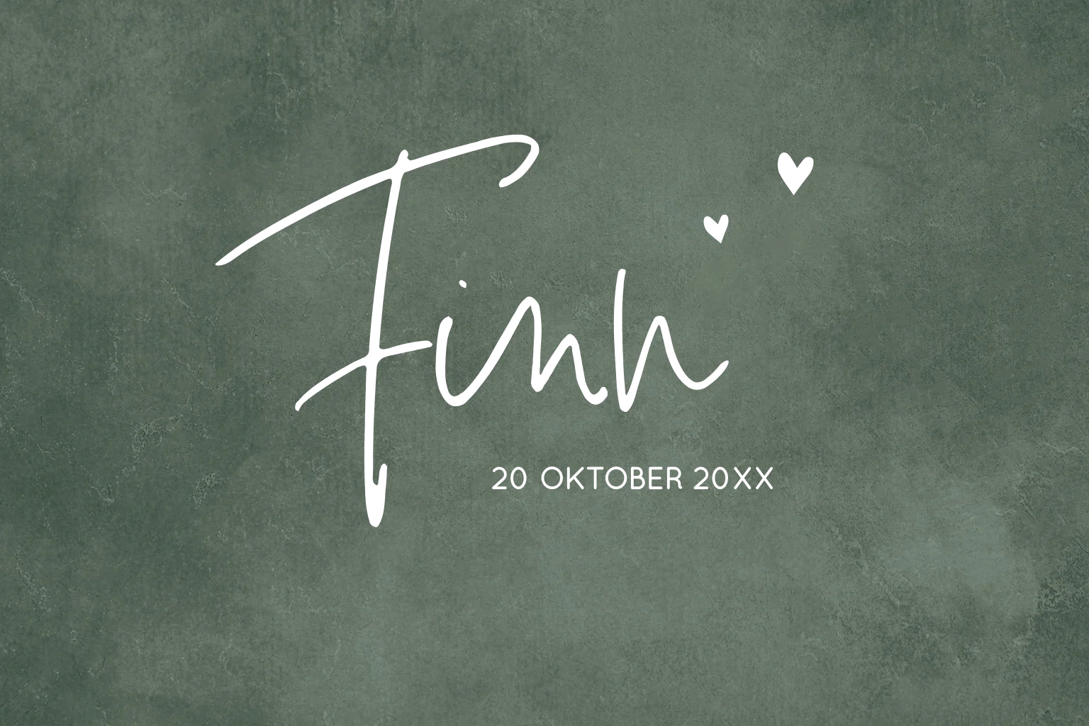 Geboortekaartje groen voor een jongen met zilverfolie en hartjes.