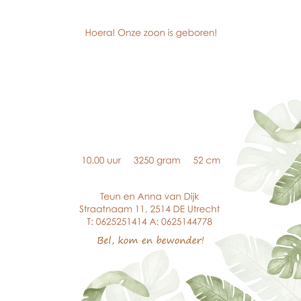 Geboortekaartje jungle leeuwtje bladeren groen goudfolie