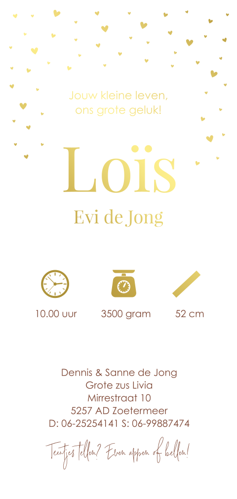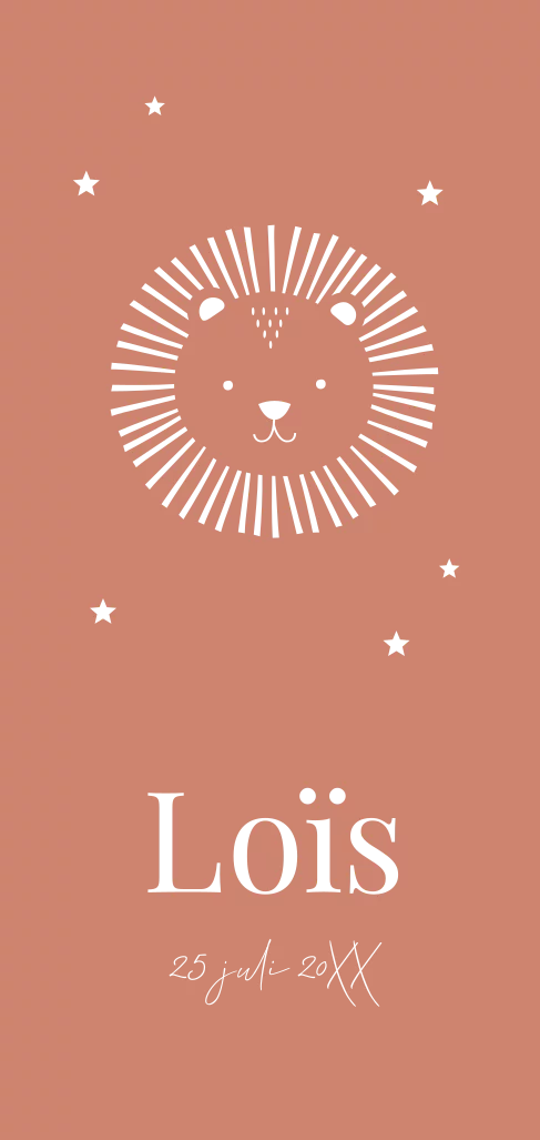 Geboortekaartje meisje langwerpig terraroze leeuwtje goudfolie