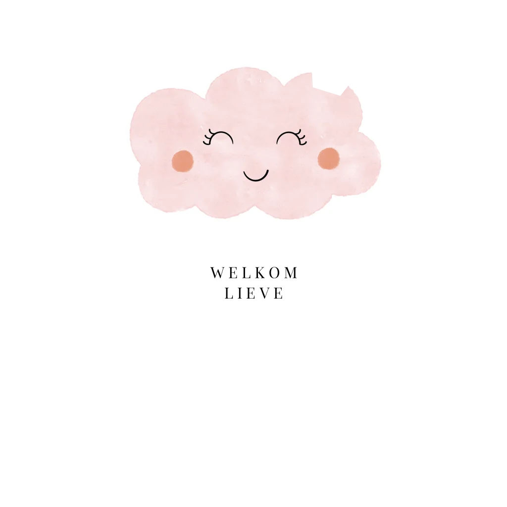 Lief geboortekaartje voor een meisje met roze wolkje en goudfolie.