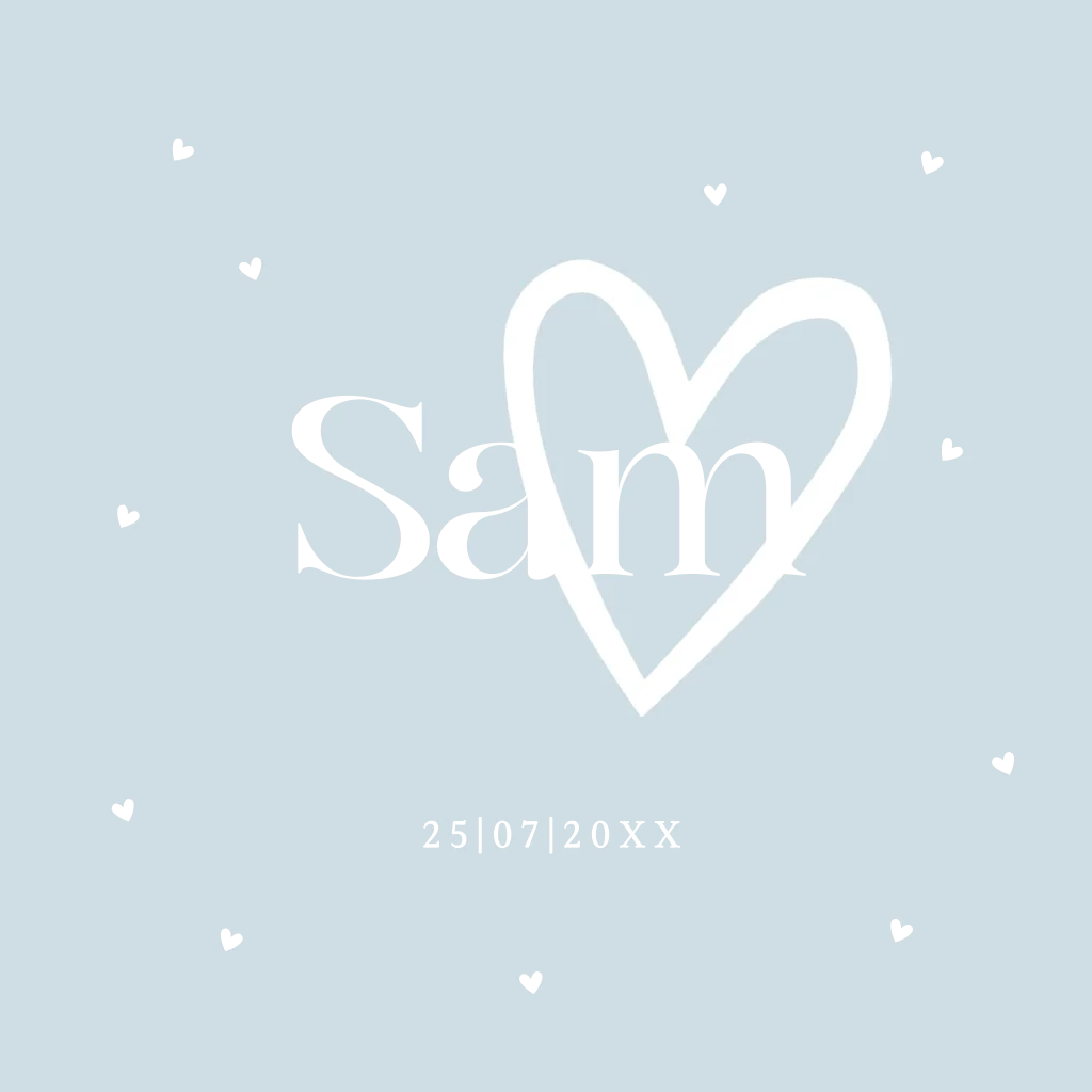 Geboortekaartje lichtblauw jongen hartjes goudfolie