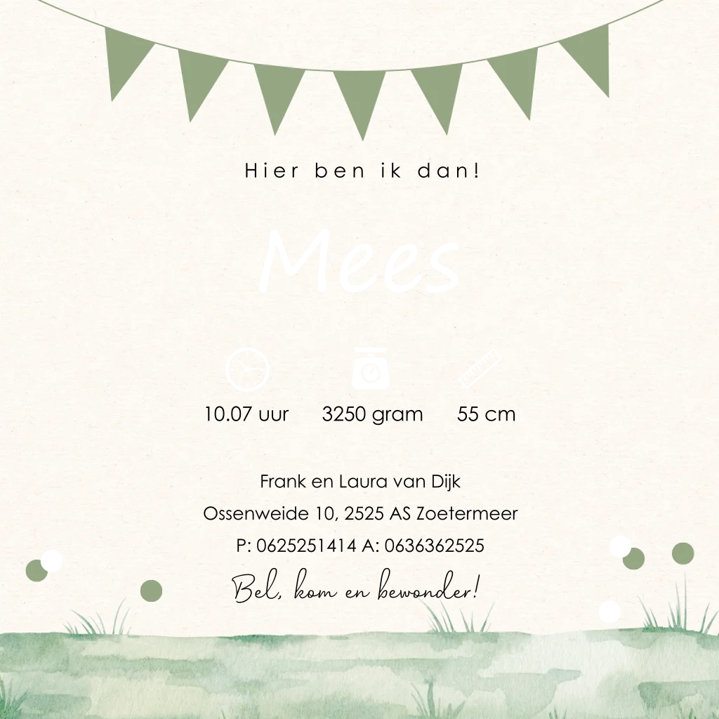 Geboortekaartje groen silhouet jongen hondje goudfolie