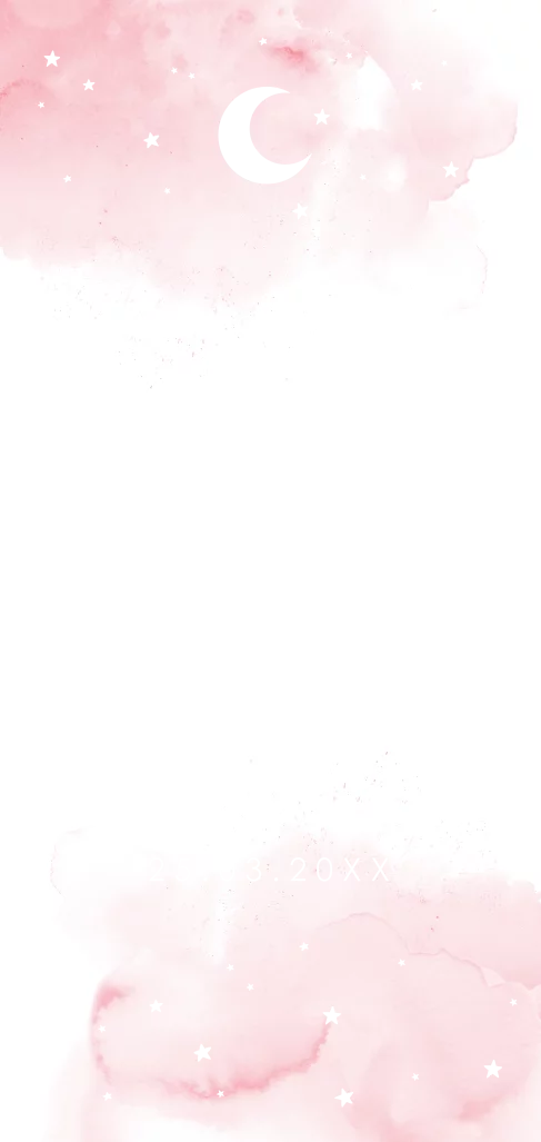 Geboortekaartje voor een meisje met roze watercolour, maan, sterren en goudfolie.