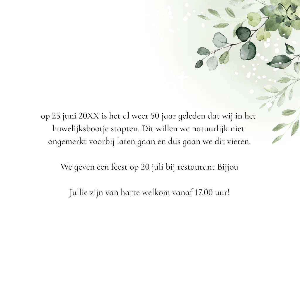Jubileum uitnodiging 50 jaar getrouwd botanisch groen goudfolie