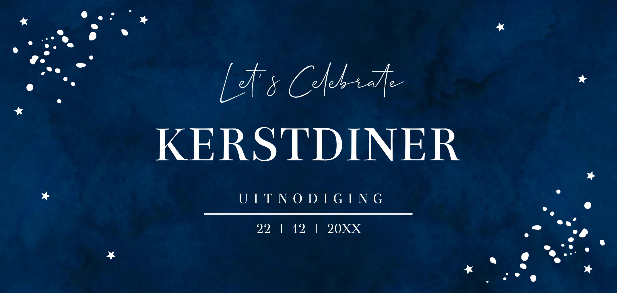 Kerstdiner uitnodiging blauw panorama met goudfolie