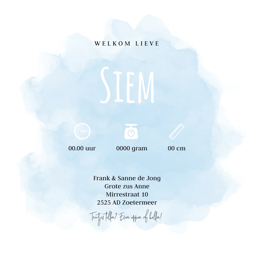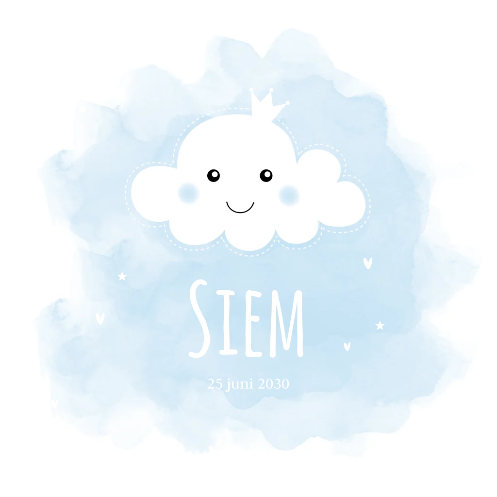 Lief geboortekaartje voor een jongen met wolkje en goudfolie.