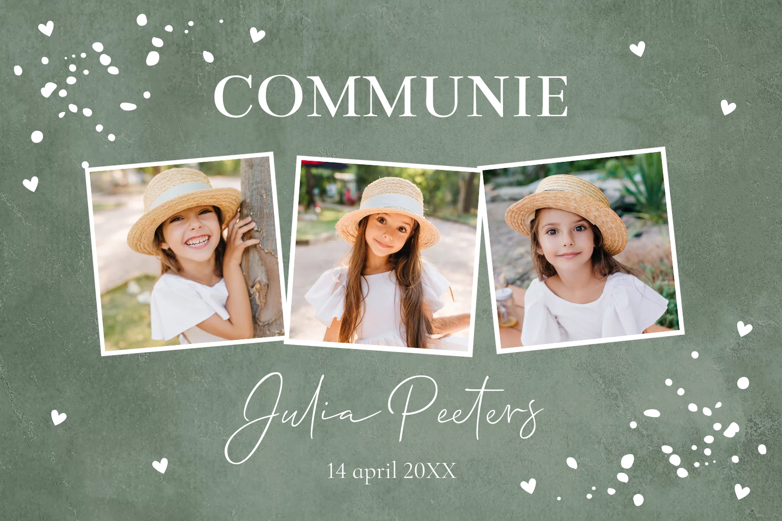 Communie uitnodiging meisje groen fotocollage goudfolie