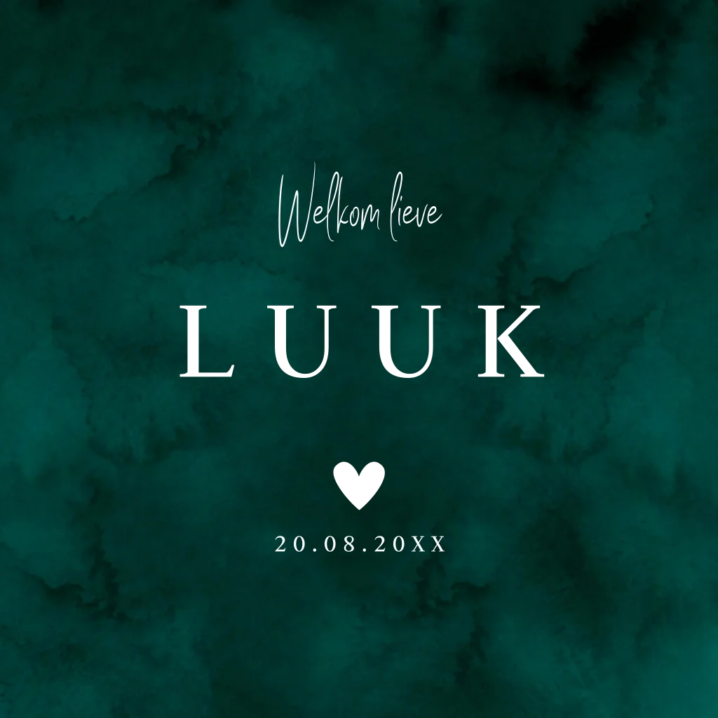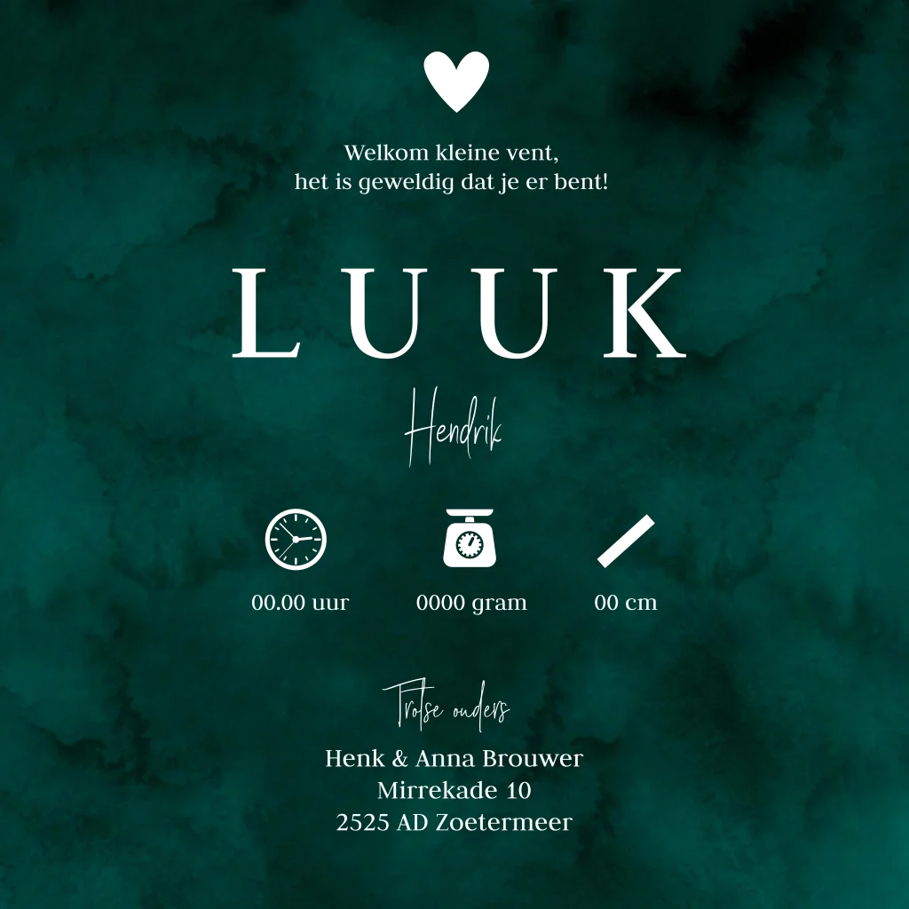 Geboortekaartje jongen groen watercolour hartje goudfolie