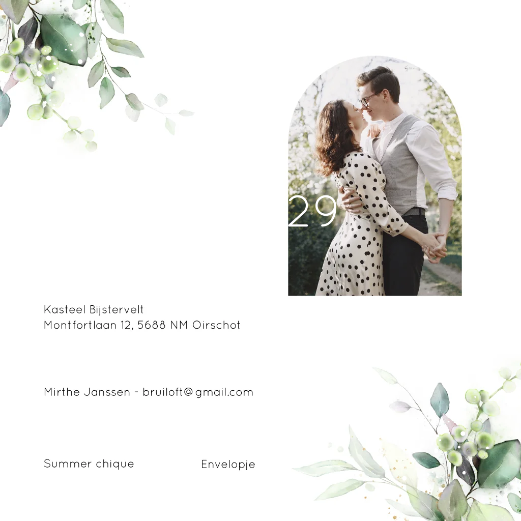 Trouwkaart kraft botanisch groen bladeren goudfolie