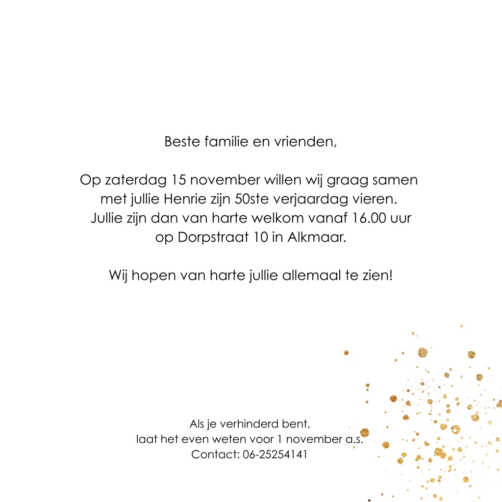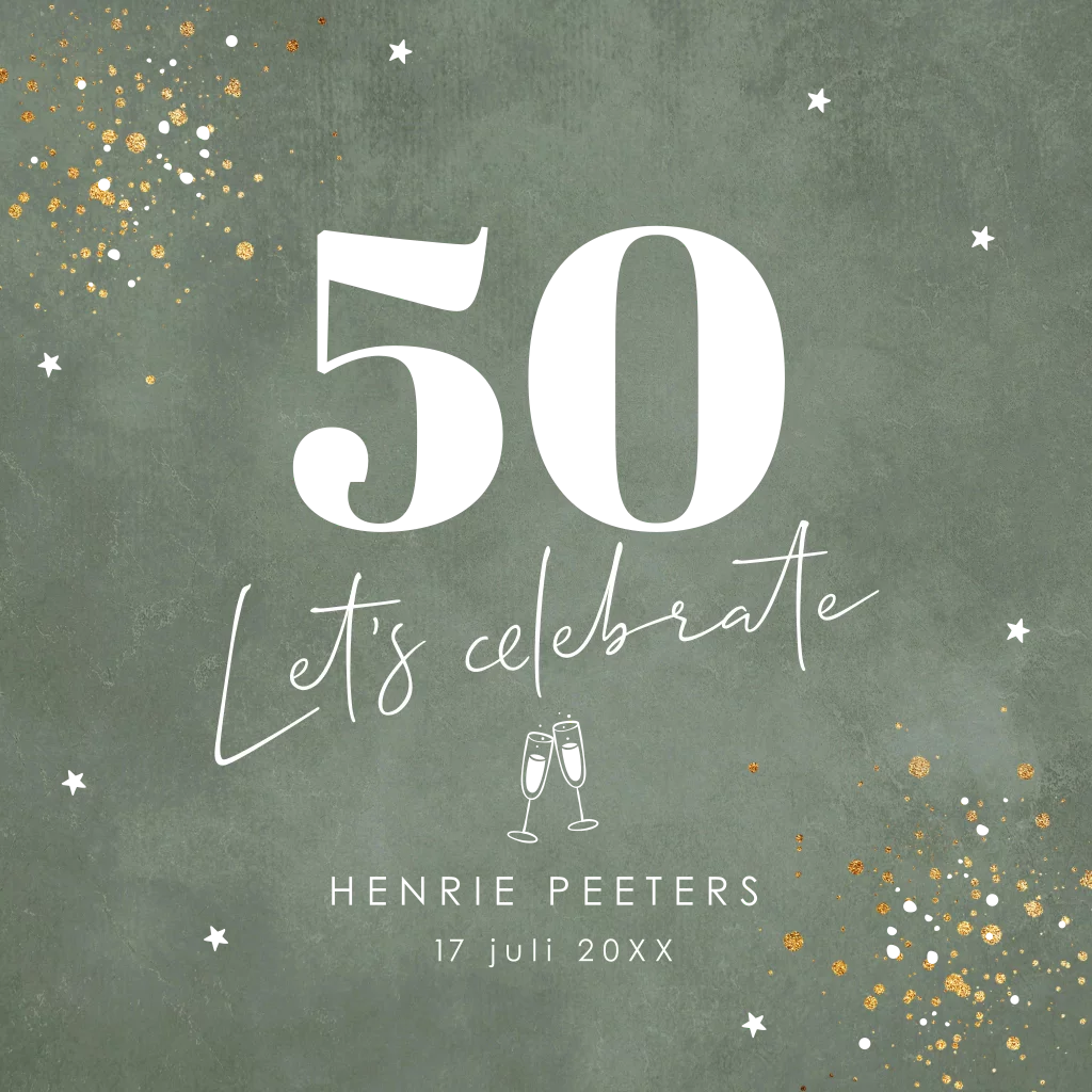 Uitnodiging verjaardag groen 50 jaar met spetters en goudfolie.