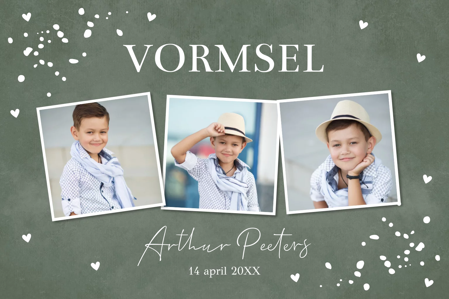 Uitnodiging vormsel groen fotocollage jongen goudfolie