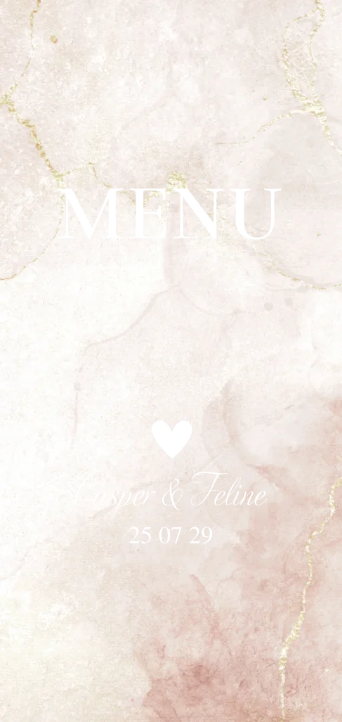Menukaart huwelijk langwerpig met marmerlook beige en goudfolie. Pas de kleur van de folie eenvoudig aan.