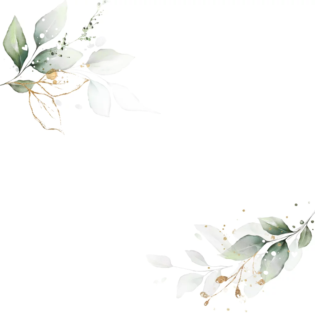 Stuur een RSVP-kaartje zodat je weet wie er aanwezig is op je trouwdag. Dit is een stijlvol kaartje met watercolour bladeren groen en goudfolie.