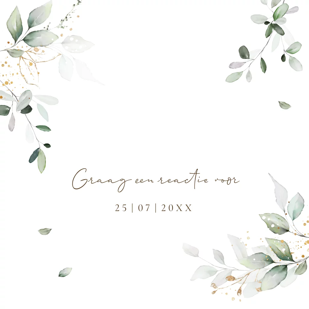 Extra kaartje huwelijk bladeren groen rosegoudfolie