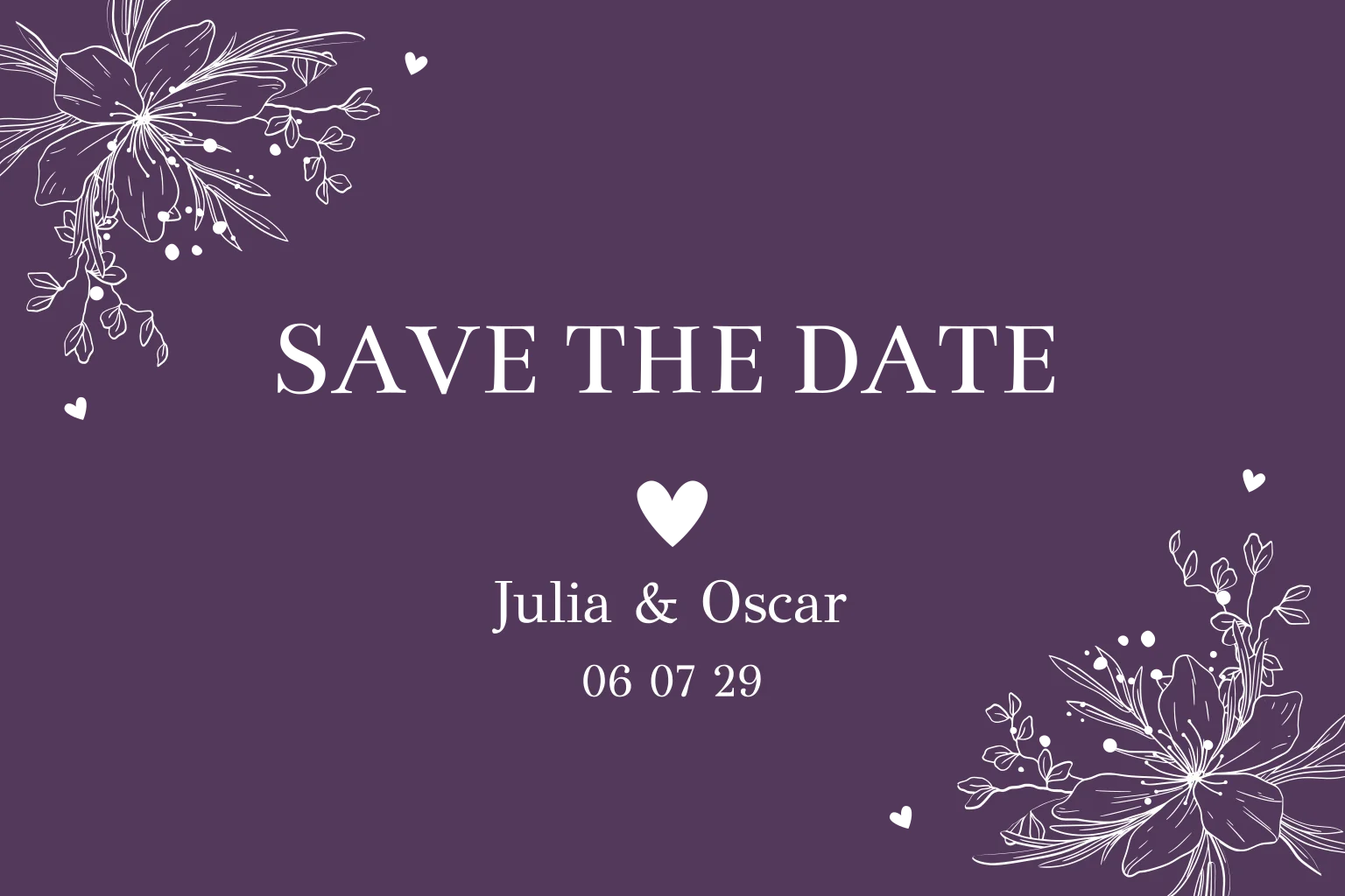 Save the Date kaart paars met waterverf en goudfolie. Maak jullie trouwdatum bekend met deze prachtige paarse Save the Date kaart.