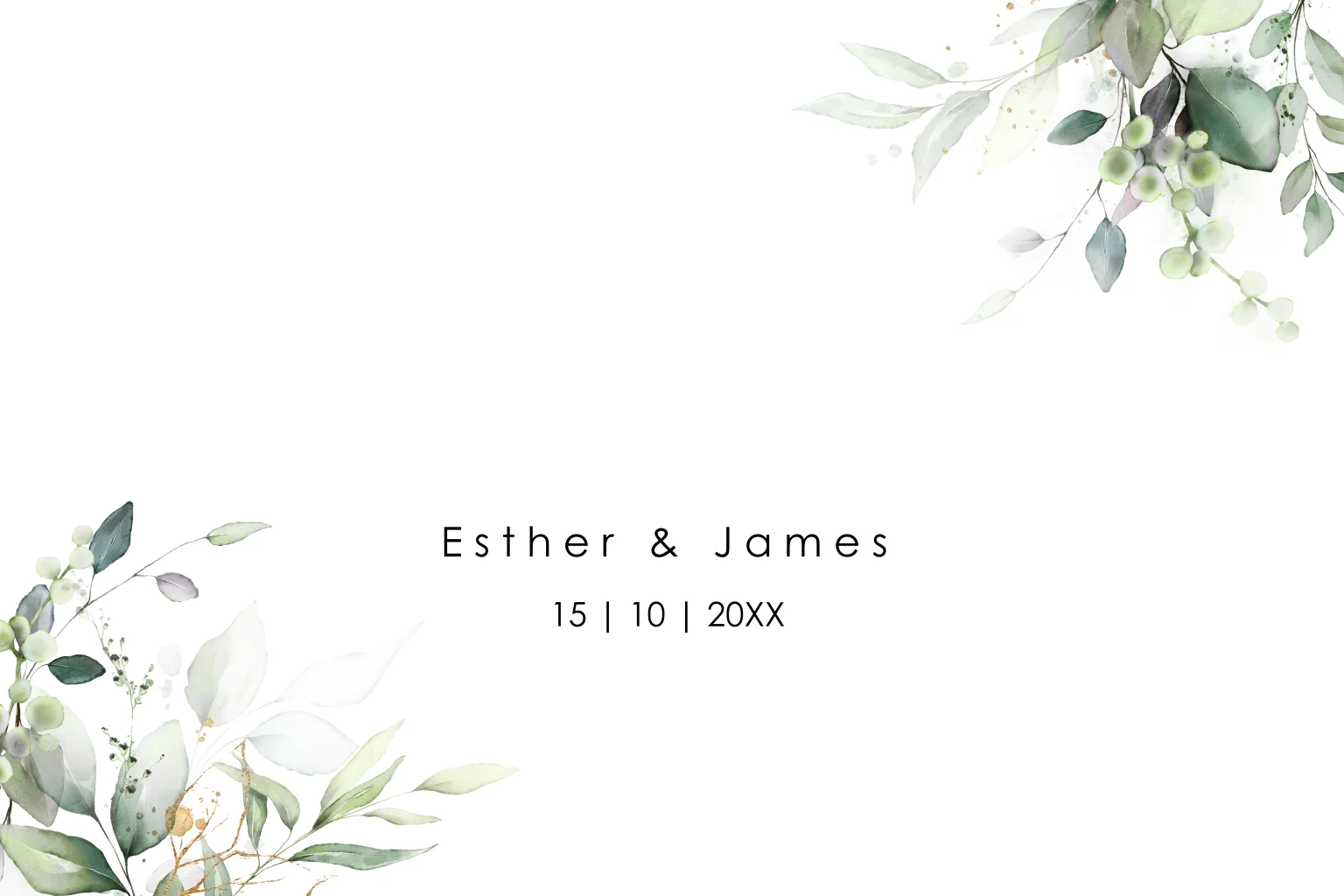 Save the Date kaart wit botanisch met groene bladeren en goudfolie. Maak jullie trouwdatum bekend met deze mooie save the date uitnodiging.