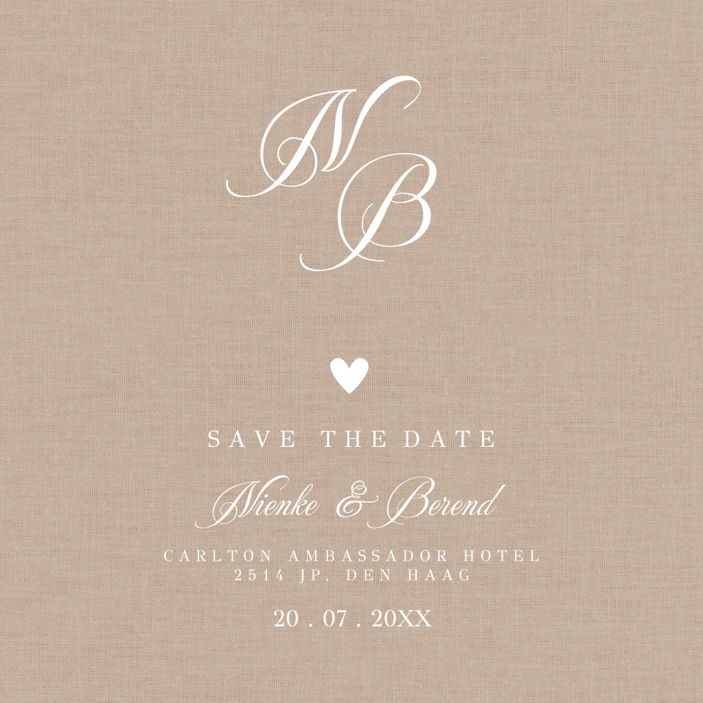 Stijlvolle en klassieke Save the Date kaart beige met mooie typografie en goudfolie. Nodig jullie gasten uit met deze stijlvolle save the date!