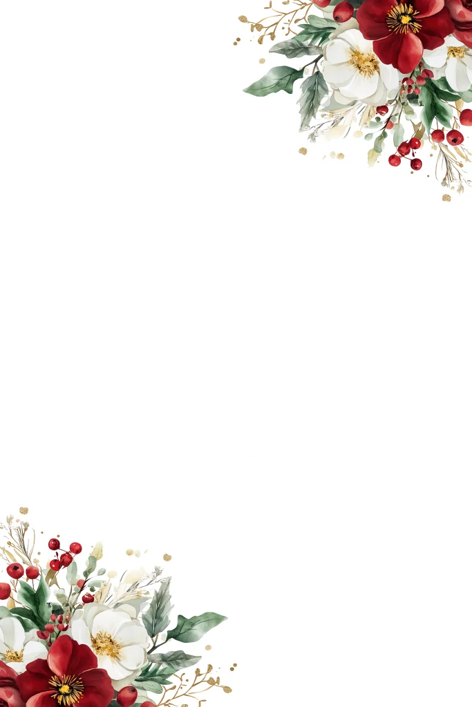 Save the Date kerstkaart wit met mooie kerstbloemen rood en luxe goudfolie. Maak jullie trouwdatum bekend met een save the date kaart en kerstkaart in één!