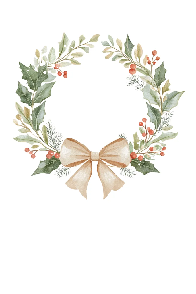 Save the Date kerstkaart met mooie kerstkrans, strik en goudfolie.