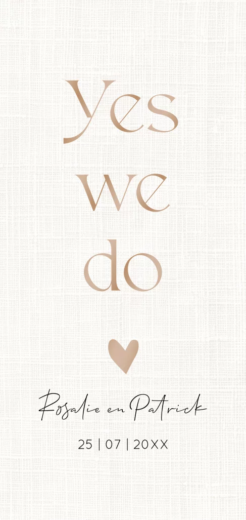 Moderne trouwkaart langwerpig met linnen look en hoogglans. Nodig jullie gasten uit met deze stijlvolle trouwkaart.