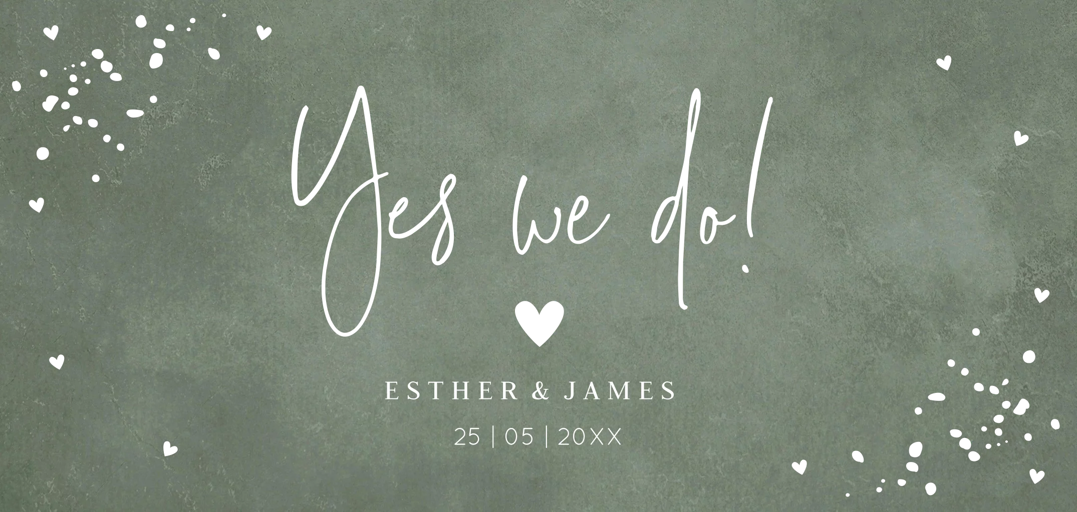 Trouwkaart groen langwerpig met goudfolie. Nodig jullie gasten uit met deze stijlvolle trouwkaart.