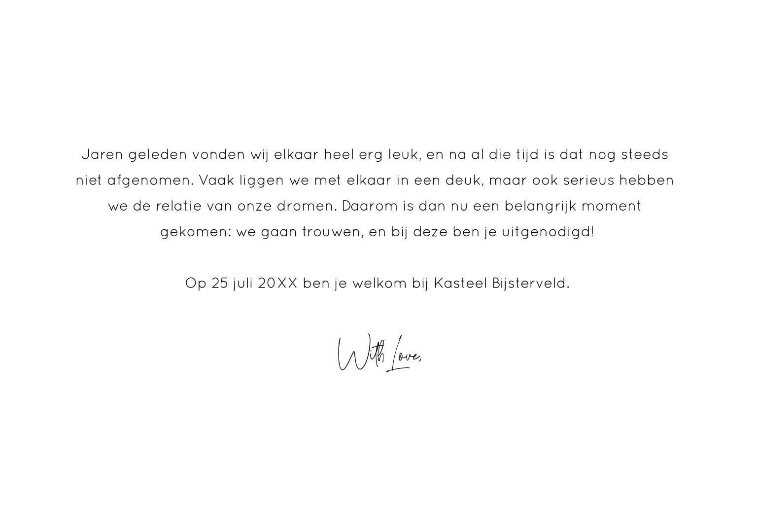Trouwkaart wit met hartjes en goudfolie. Pas de kleur van de folie zelf eenvoudig aan.