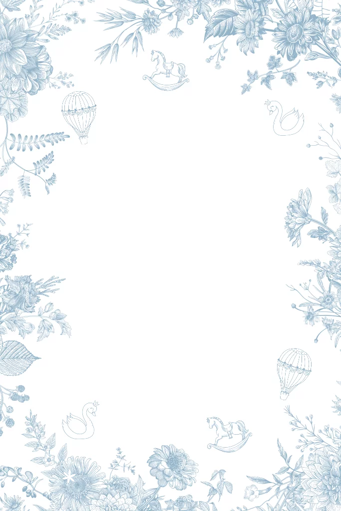 Babyshower uitnodiging floral blauw figuurtjes zilverfolie