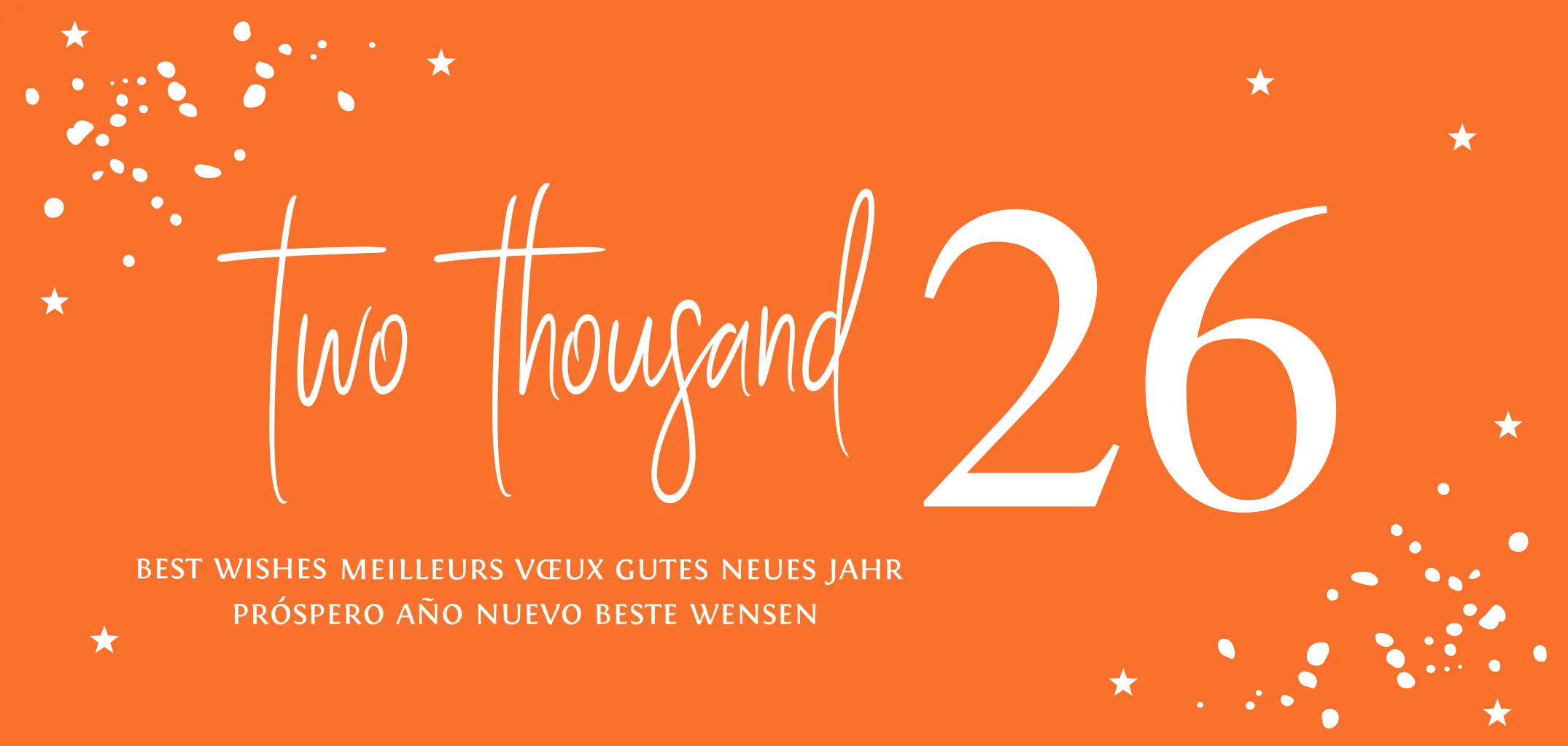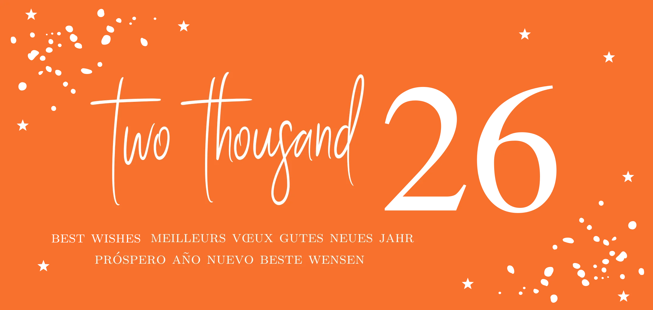 Zakelijke kerstkaart modern bedrijf jaartal 2026 oranje goudfolie