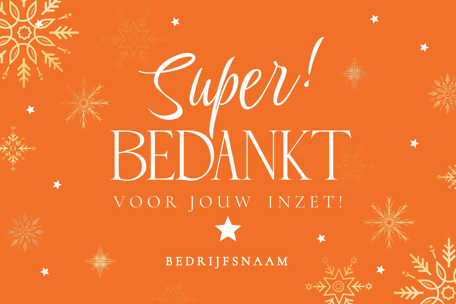Moderne zakelijke kerstkaart oranje met tekst super bedankt voor jouw inzet en goudfolie.
