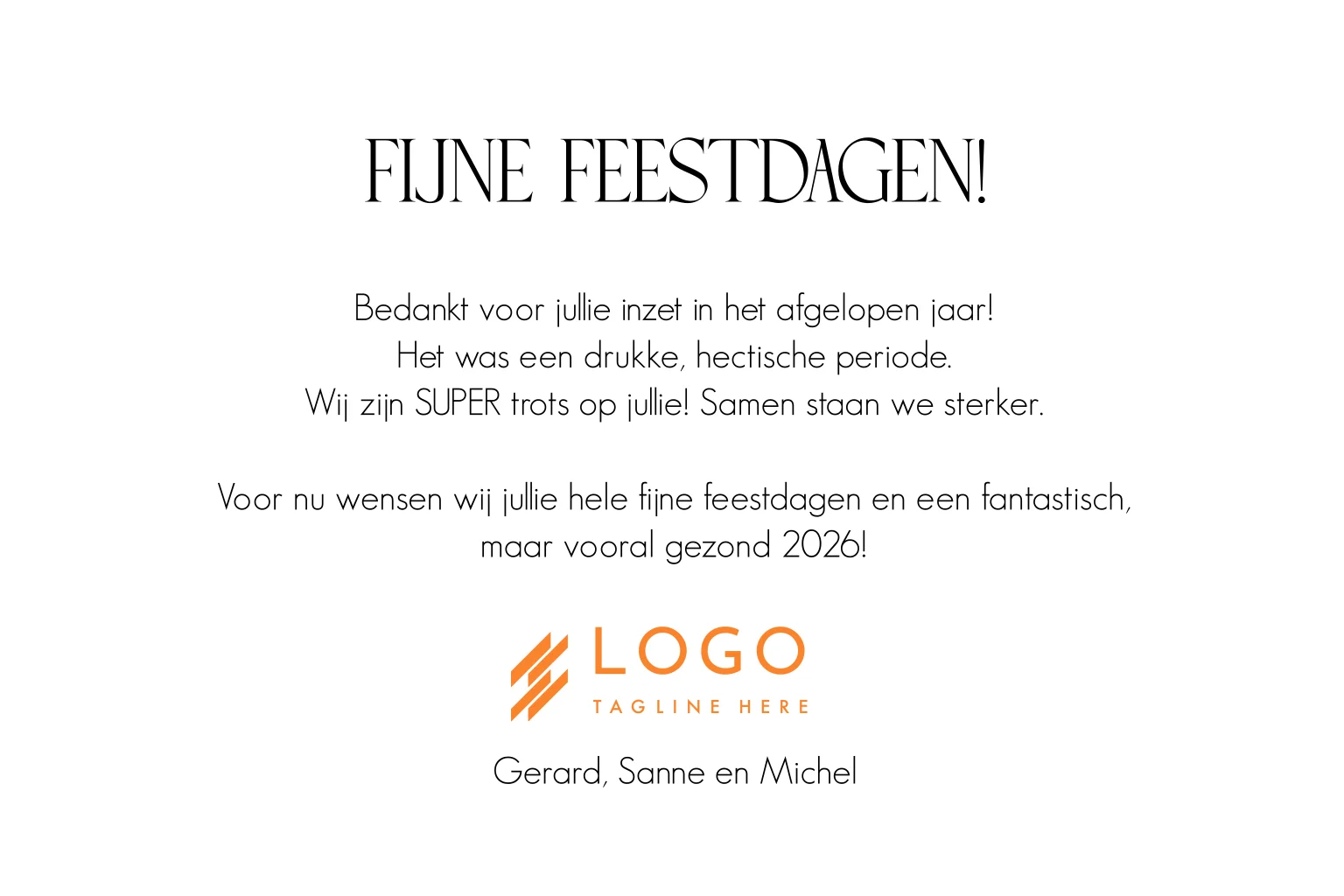 Zakelijke kerstkaart oranje bedankt medewerker inzet goudfolie