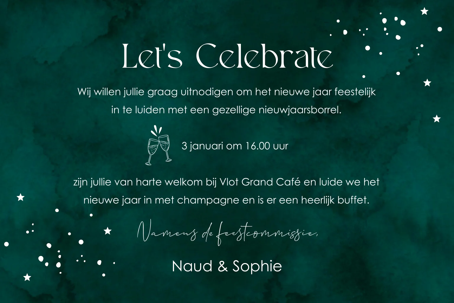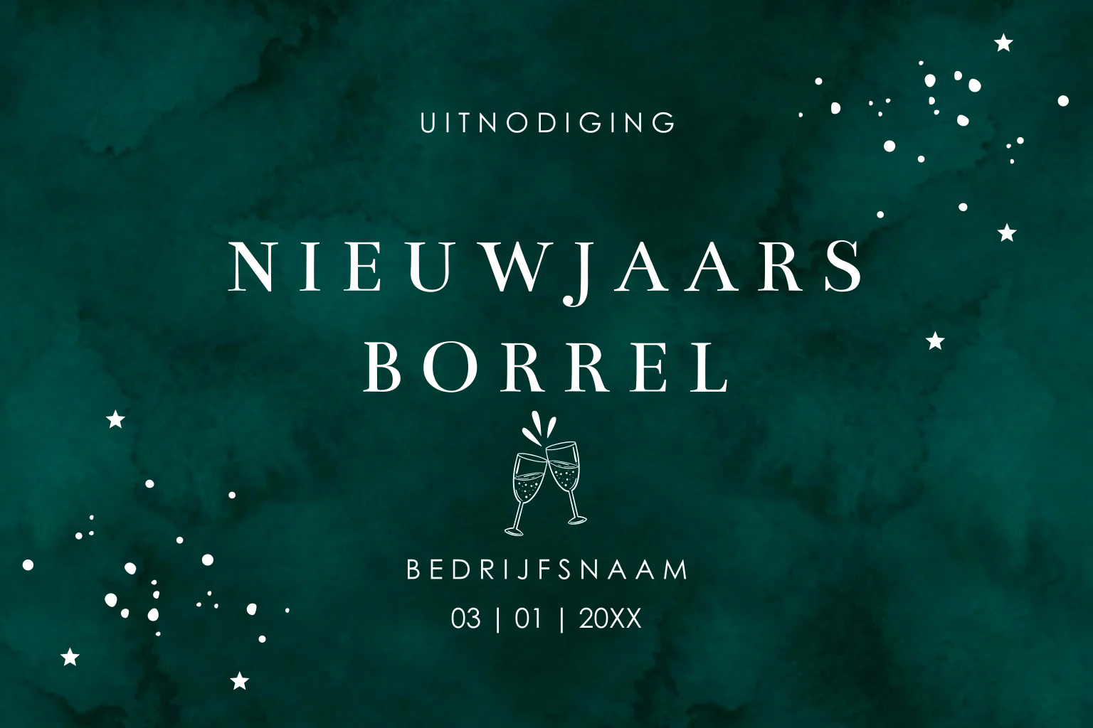 Zakelijke nieuwjaarsborrel uitnodiging groen met goudfolie.