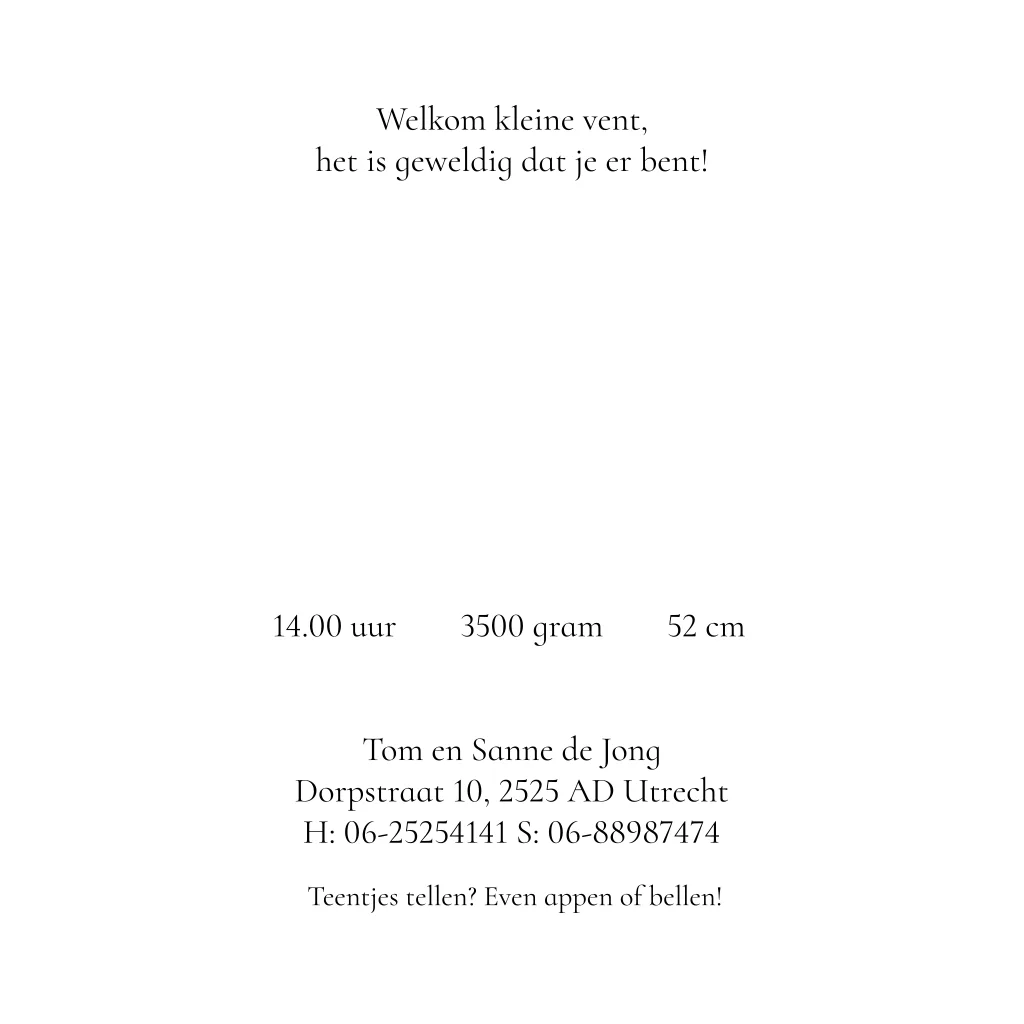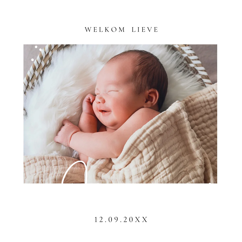 Geboortekaartje vierkant dubbel wit met eigen foto en goudfolie.