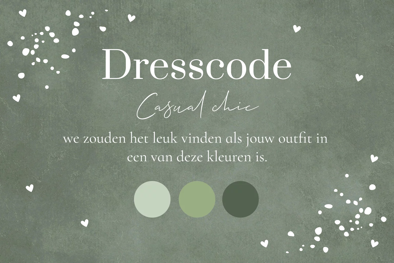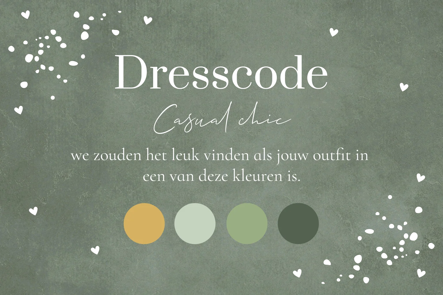 Dresscode huwelijk kleurenpalet groen en goudfolie.