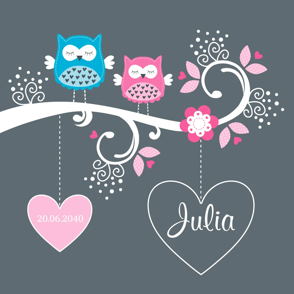Geboortekaartje voor een zusje met uiltjes.