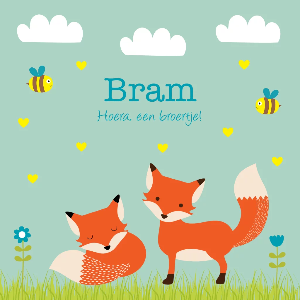 Geboortekaartje broertje vosjes