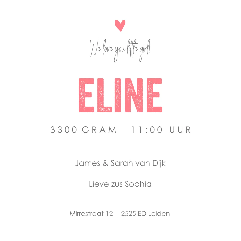 Trendy geboortekaartje met foto en kalender, meetlint, gewicht en wekker.