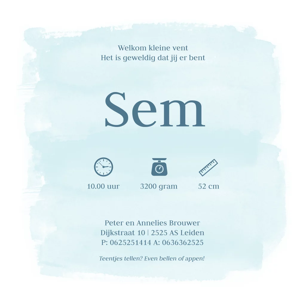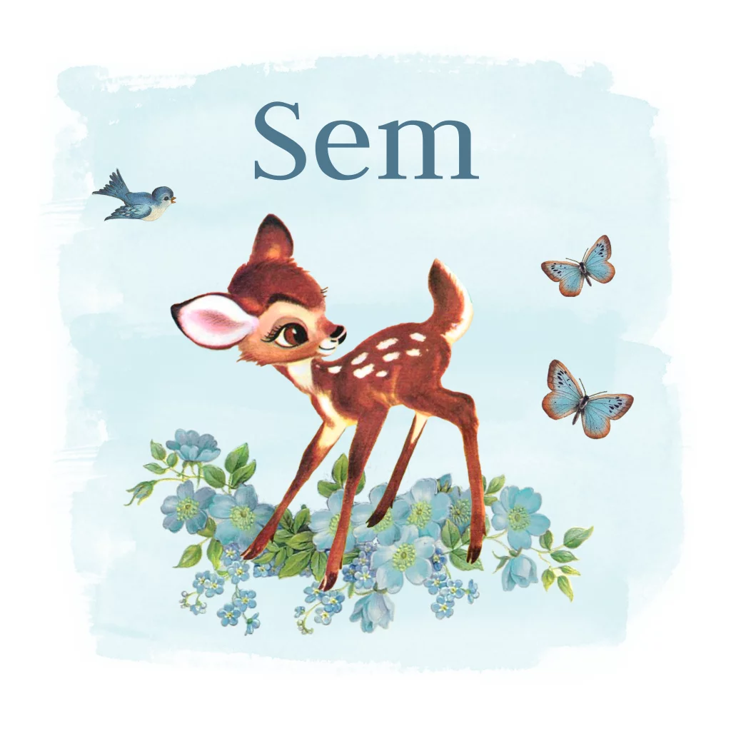 Mooi lief geboortekaartje voor een jongen met hertje en waterverf achtergrond.